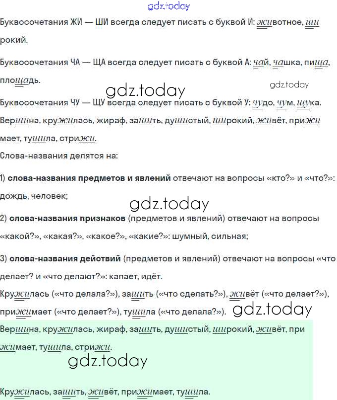 Решение. Буквосочетания ЖИ-ШИ, ЧА-ЩА, ЧУ-ЩУ
