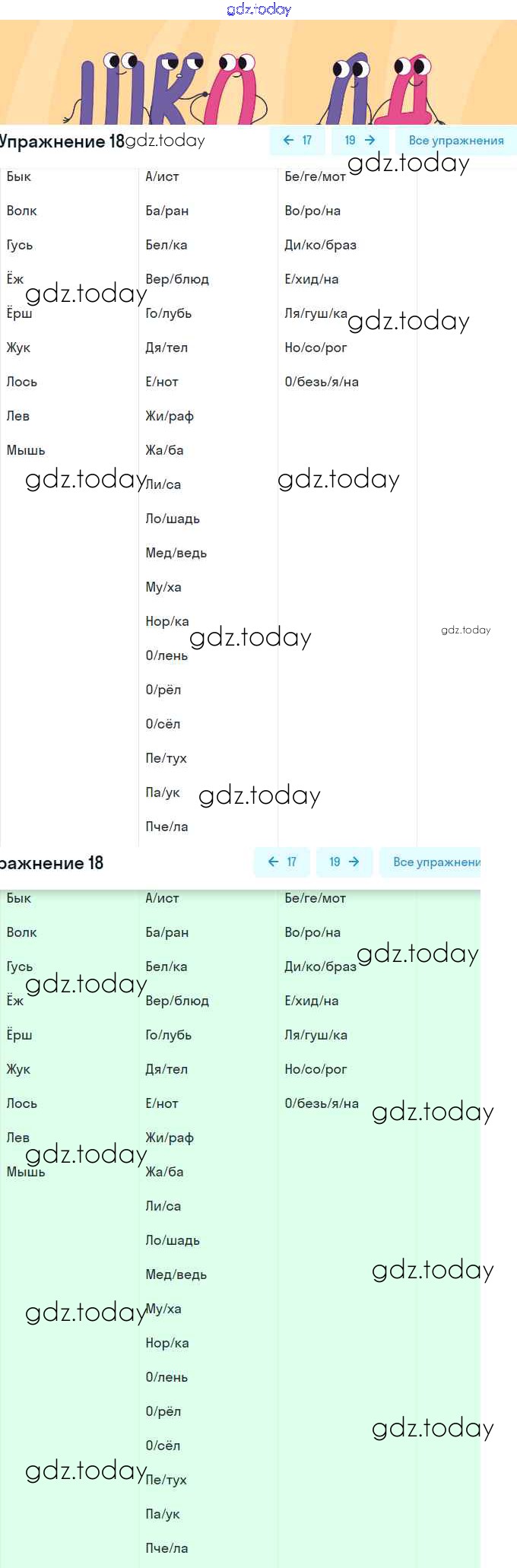 На страницах сайта gdz.today вы найдете учебный и вспомогательный материал, направленный на улучшения знаний школьной программы. ГДЗ - онлайн мир знаний Решение. Упражнения  18 Учебнику по Русскому языку для 1 класса Чуракова  Академкнига Перспективная начальная школа 2016