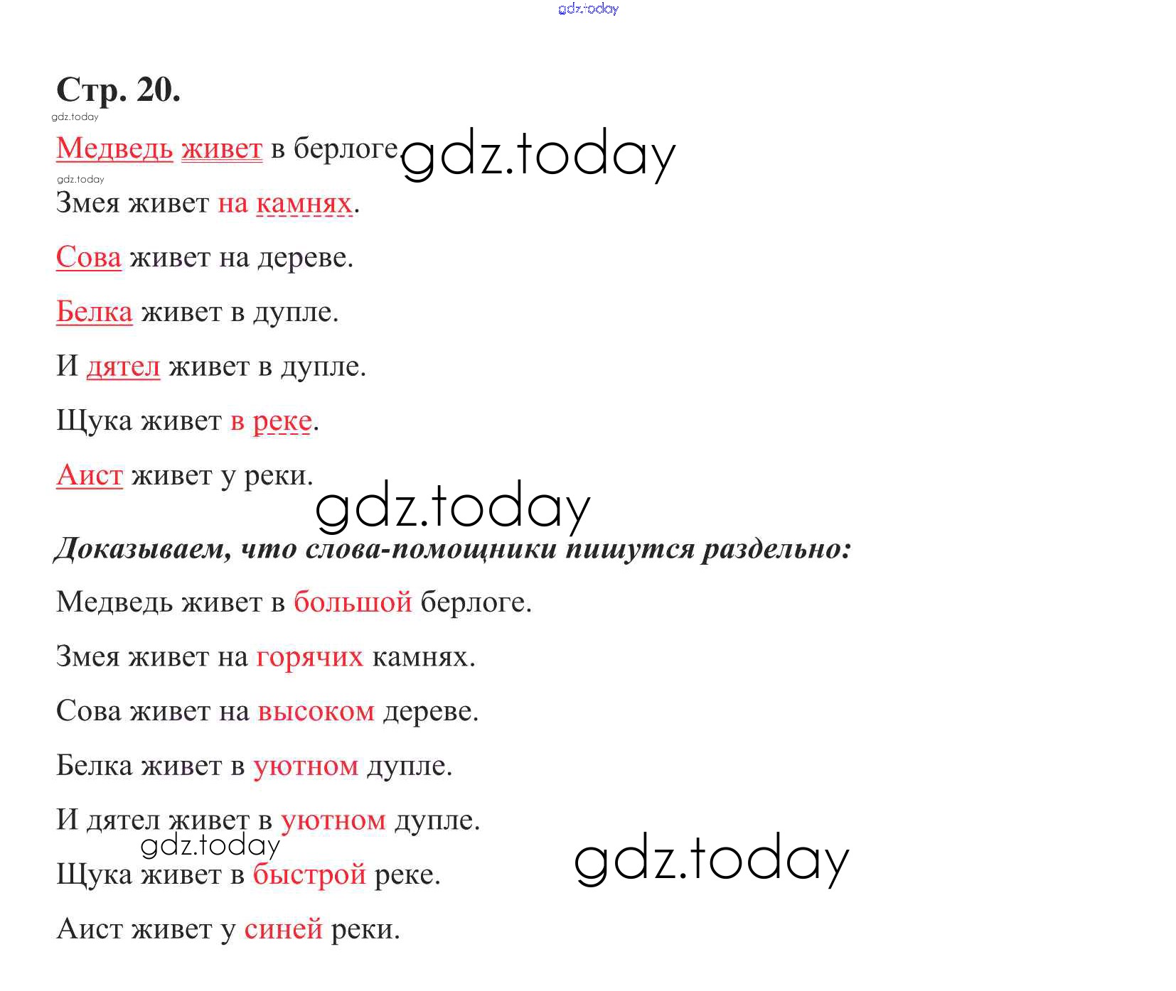 На страницах сайта gdz.today вы найдете учебный и вспомогательный материал, направленный на улучшения знаний школьной программы. ГДЗ - онлайн мир знаний Решение. Задания на страницах  стр. 20 Учебнику по Русскому языку для 1 класса Чуракова  Академкнига Перспективная начальная школа 2016