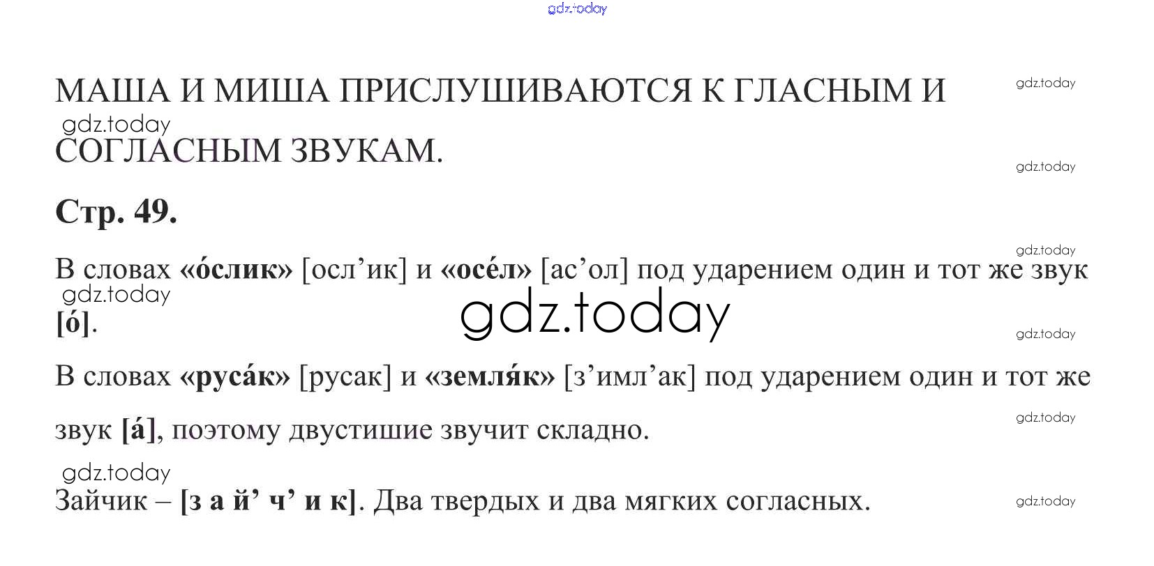 На страницах сайта gdz.today вы найдете учебный и вспомогательный материал, направленный на улучшения знаний школьной программы. ГДЗ - онлайн мир знаний Решение. Задания на страницах  стр. 49 Учебнику по Русскому языку для 1 класса Чуракова  Академкнига Перспективная начальная школа 2016