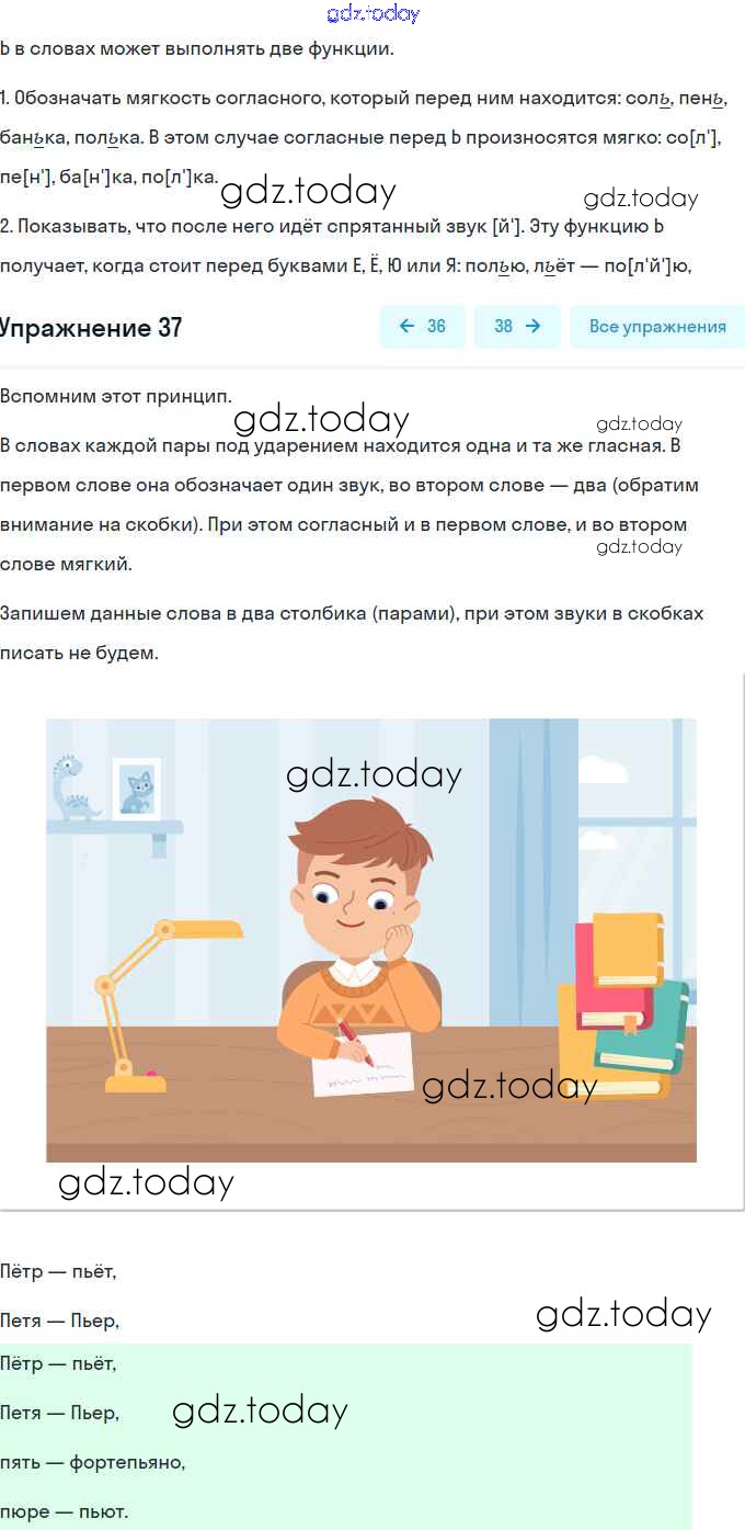 На страницах сайта gdz.today вы найдете учебный и вспомогательный материал, направленный на улучшения знаний школьной программы. ГДЗ - онлайн мир знаний Решение. Упражнения  37 Учебнику по Русскому языку для 1 класса Чуракова  Академкнига Перспективная начальная школа 2016