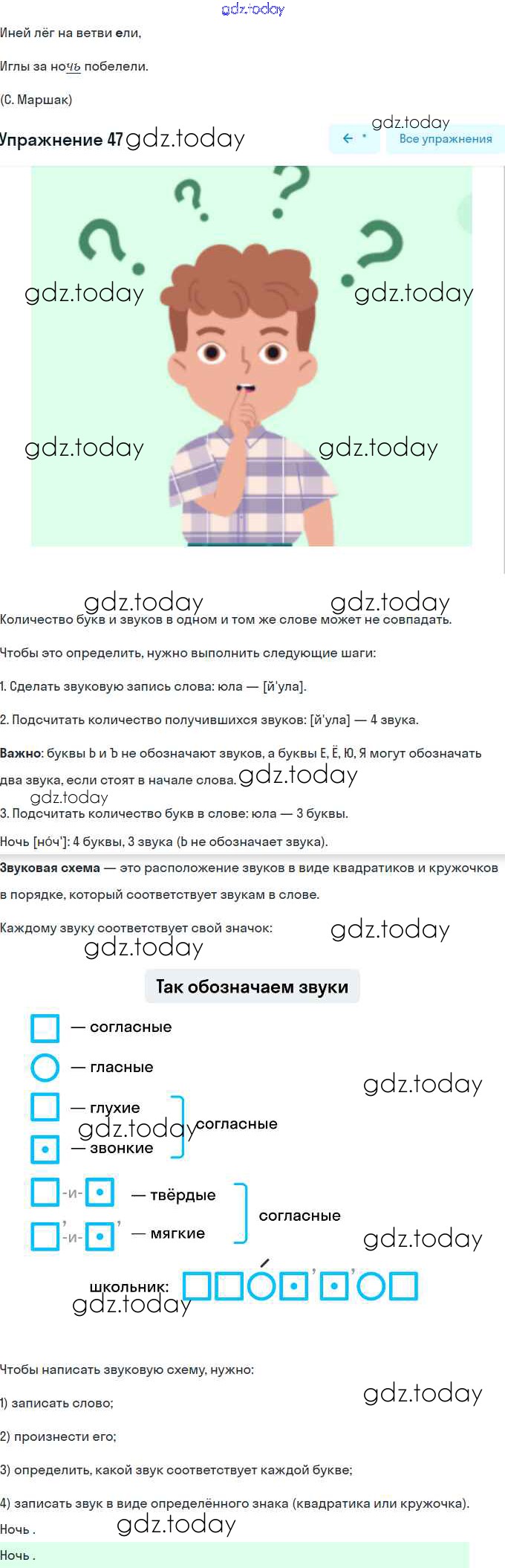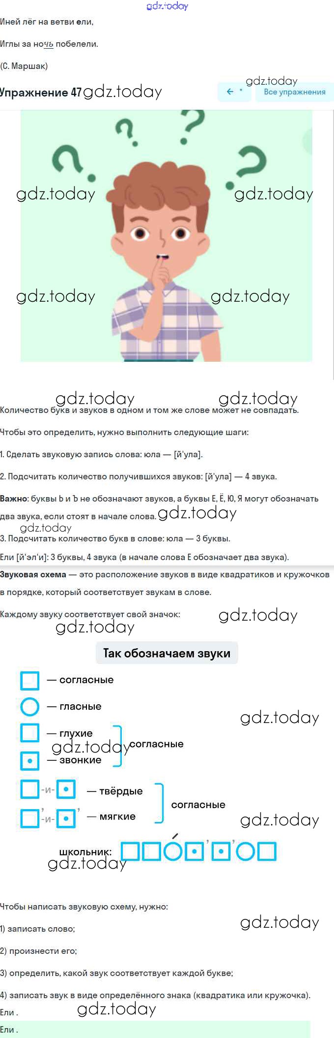 Ответы к Решение. Упражнения  47 Учебнику по Русскому языку для 1 класса Чуракова  Академкнига Перспективная начальная школа 2016
