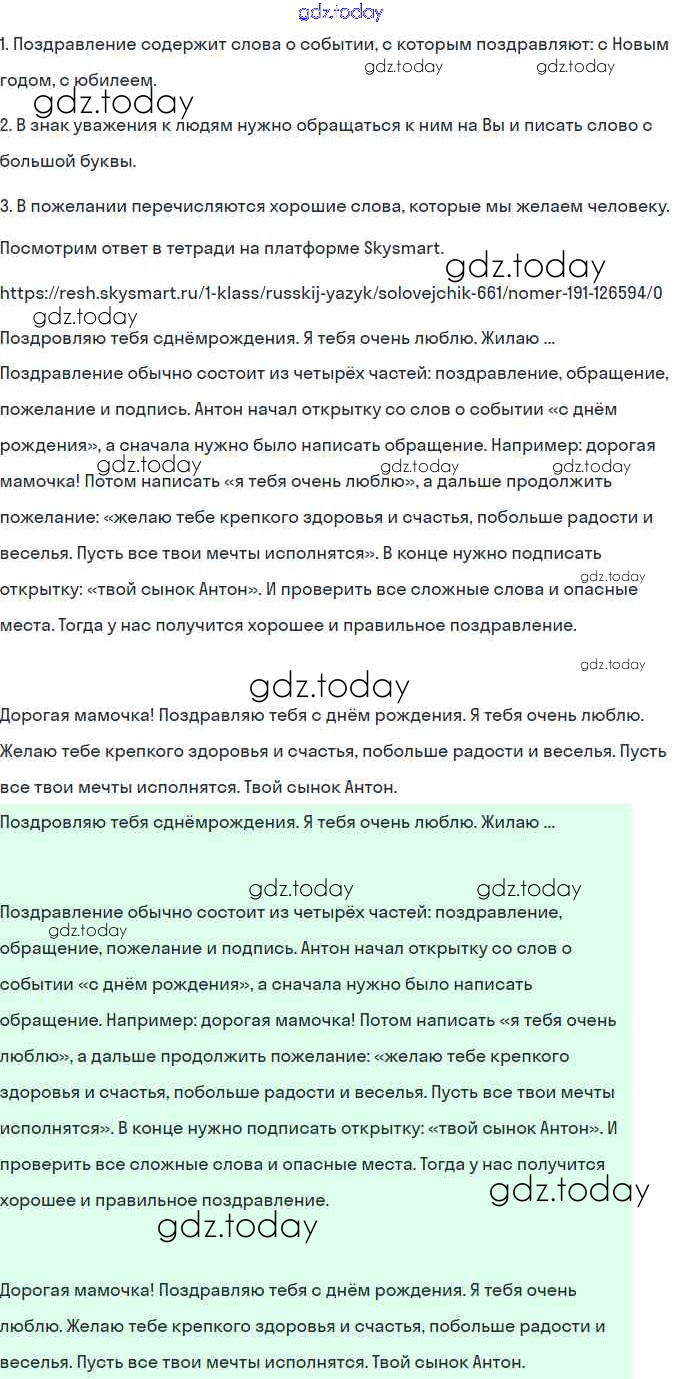 На страницах сайта gdz.today вы найдете учебный и вспомогательный материал, направленный на улучшения знаний школьной программы. ГДЗ - онлайн мир знаний Решебник. Упражнения  191 Учебнику по Русскому языку для 1 класса Кузьменко, Соловейчик  Просвещение Гармония 2022
