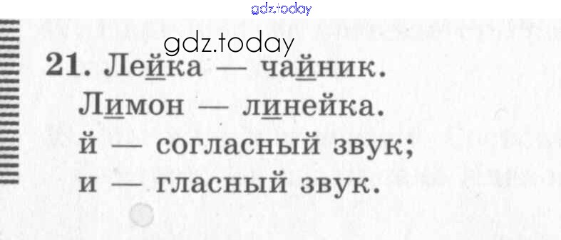 На страницах сайта gdz.today вы найдете учебный и вспомогательный материал, направленный на улучшения знаний школьной программы. ГДЗ - онлайн мир знаний Решение к главе 3. Звуки и буквы  21 Учебнику по Русскому языку для 1 класса Зеленина, Хохлова  Просвещение  2011