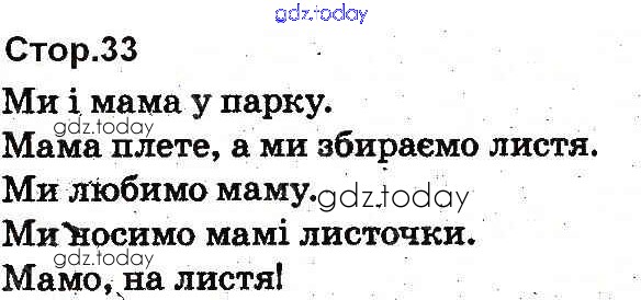 На страницах сайта gdz.today вы найдете учебный и вспомогательный материал, направленный на улучшения знаний школьной программы. ГДЗ - онлайн мир знаний Рішення до Букви (Стрівниці)  33 Букварю по Украинскому языку для 1 класса Лапшина  Освiта  2012