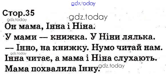 На страницах сайта gdz.today вы найдете учебный и вспомогательный материал, направленный на улучшения знаний школьной программы. ГДЗ - онлайн мир знаний Рішення до Букви (Стрівниці)  35 Букварю по Украинскому языку для 1 класса Лапшина  Освiта  2012