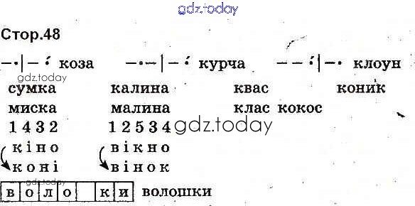 На страницах сайта gdz.today вы найдете учебный и вспомогательный материал, направленный на улучшения знаний школьной программы. ГДЗ - онлайн мир знаний Рішення до Букви (Стрівниці)  48 Букварю по Украинскому языку для 1 класса Лапшина  Освiта  2012