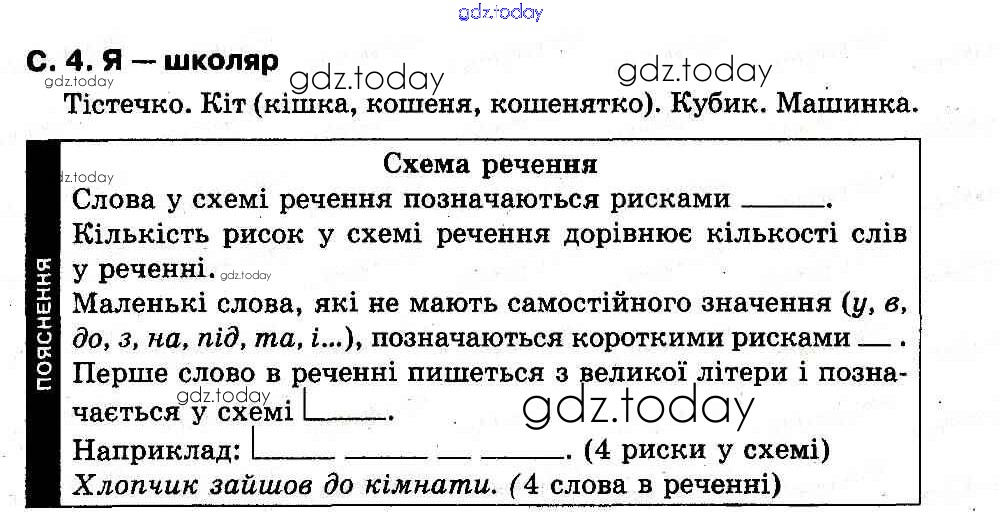На страницах сайта gdz.today вы найдете учебный и вспомогательный материал, направленный на улучшения знаний школьной программы. ГДЗ - онлайн мир знаний Рішення до Я - школяр (Сторінки)  4 Букварю по Украинскому языку для 1 класса Захарийчук, Науменко  Грамота  2012