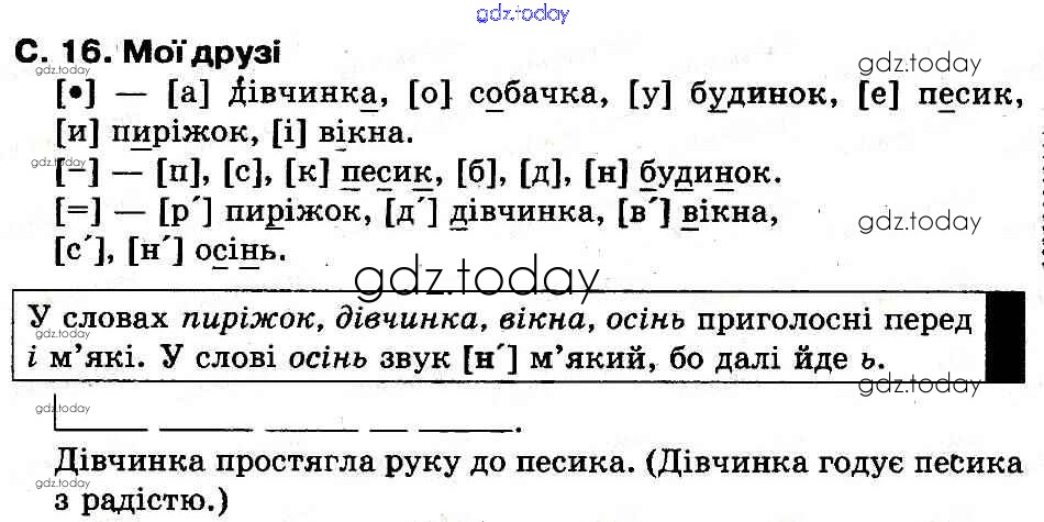 Ответы к Рішення до Мої друзi (Сторінки)  16 Букварю по Украинскому языку для 1 класса Захарийчук, Науменко  Грамота  2012