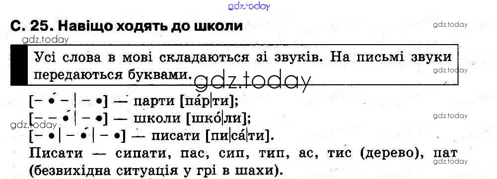 На страницах сайта gdz.today вы найдете учебный и вспомогательный материал, направленный на улучшения знаний школьной программы. ГДЗ - онлайн мир знаний Рішення до Моя школа (Сторінки)  25 Букварю по Украинскому языку для 1 класса Захарийчук, Науменко  Грамота  2012