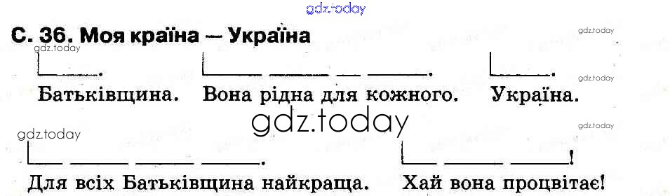 На страницах сайта gdz.today вы найдете учебный и вспомогательный материал, направленный на улучшения знаний школьной программы. ГДЗ - онлайн мир знаний Рішення до Моя країна - Україна (Сторінки)  36 Букварю по Украинскому языку для 1 класса Захарийчук, Науменко  Грамота  2012