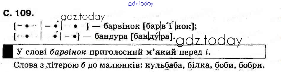 На страницах сайта gdz.today вы найдете учебный и вспомогательный материал, направленный на улучшения знаний школьной программы. ГДЗ - онлайн мир знаний Рішення до Букви (Сторінки)  109 Букварю по Украинскому языку для 1 класса Захарийчук, Науменко  Грамота  2012