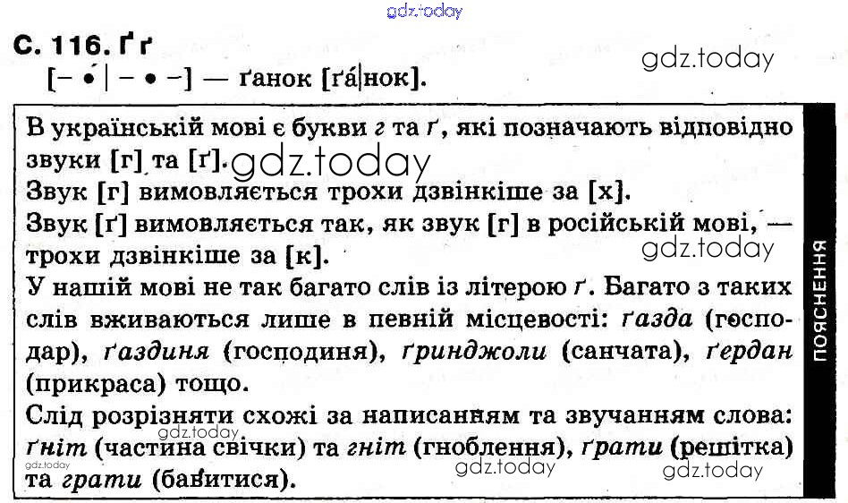 На страницах сайта gdz.today вы найдете учебный и вспомогательный материал, направленный на улучшения знаний школьной программы. ГДЗ - онлайн мир знаний Рішення до Букви (Сторінки)  116 Букварю по Украинскому языку для 1 класса Захарийчук, Науменко  Грамота  2012