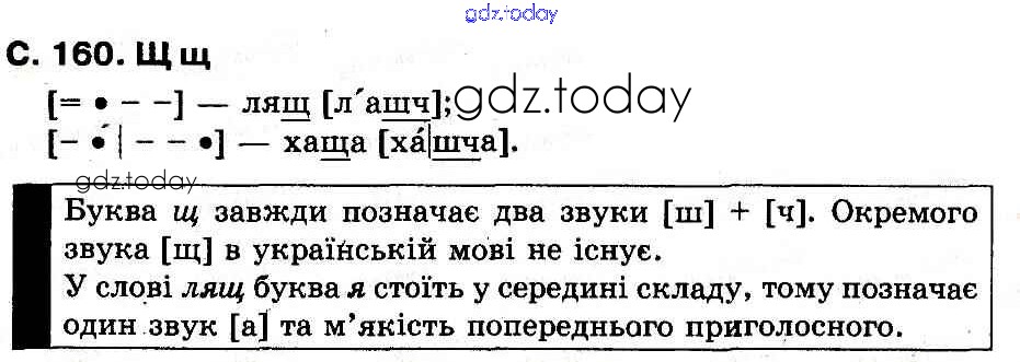На страницах сайта gdz.today вы найдете учебный и вспомогательный материал, направленный на улучшения знаний школьной программы. ГДЗ - онлайн мир знаний Рішення до Букви (Сторінки)  160 Букварю по Украинскому языку для 1 класса Захарийчук, Науменко  Грамота  2012