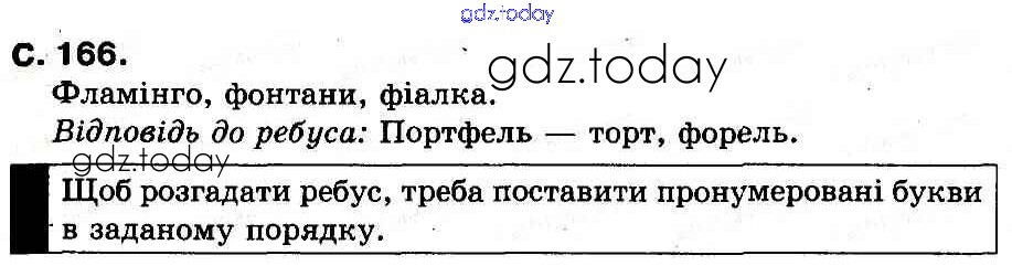 На страницах сайта gdz.today вы найдете учебный и вспомогательный материал, направленный на улучшения знаний школьной программы. ГДЗ - онлайн мир знаний Рішення до Букви (Сторінки)  166 Букварю по Украинскому языку для 1 класса Захарийчук, Науменко  Грамота  2012