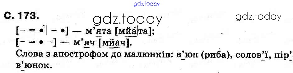 На страницах сайта gdz.today вы найдете учебный и вспомогательный материал, направленный на улучшения знаний школьной программы. ГДЗ - онлайн мир знаний Рішення до Букви (Сторінки)  173 Букварю по Украинскому языку для 1 класса Захарийчук, Науменко  Грамота  2012