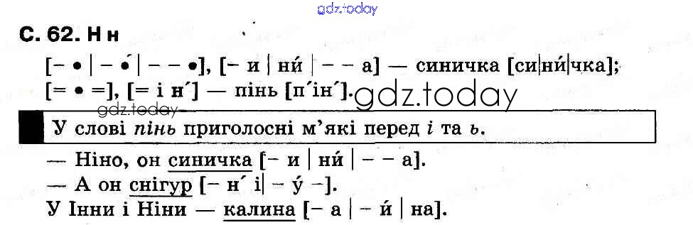На страницах сайта gdz.today вы найдете учебный и вспомогательный материал, направленный на улучшения знаний школьной программы. ГДЗ - онлайн мир знаний Рішення до Букви (Сторінки)  62 Букварю по Украинскому языку для 1 класса Захарийчук, Науменко  Грамота  2012