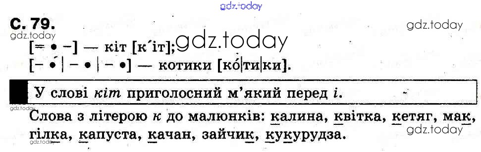 На страницах сайта gdz.today вы найдете учебный и вспомогательный материал, направленный на улучшения знаний школьной программы. ГДЗ - онлайн мир знаний Рішення до Букви (Сторінки)  79 Букварю по Украинскому языку для 1 класса Захарийчук, Науменко  Грамота  2012