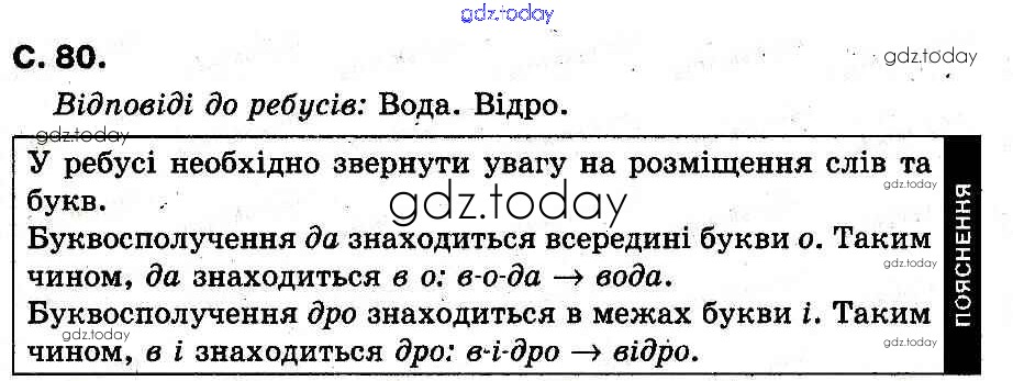На страницах сайта gdz.today вы найдете учебный и вспомогательный материал, направленный на улучшения знаний школьной программы. ГДЗ - онлайн мир знаний Рішення до Букви (Сторінки)  80 Букварю по Украинскому языку для 1 класса Захарийчук, Науменко  Грамота  2012