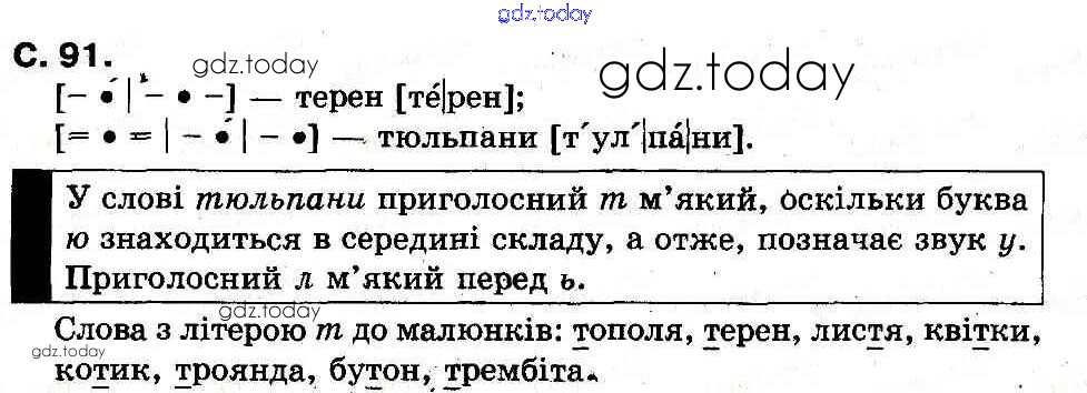 На страницах сайта gdz.today вы найдете учебный и вспомогательный материал, направленный на улучшения знаний школьной программы. ГДЗ - онлайн мир знаний Рішення до Букви (Сторінки)  91 Букварю по Украинскому языку для 1 класса Захарийчук, Науменко  Грамота  2012
