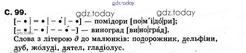 На страницах сайта gdz.today вы найдете учебный и вспомогательный материал, направленный на улучшения знаний школьной программы. ГДЗ - онлайн мир знаний Рішення до Букви (Сторінки)  99 Букварю по Украинскому языку для 1 класса Захарийчук, Науменко  Грамота  2012