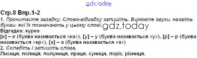 На страницах сайта gdz.today вы найдете учебный и вспомогательный материал, направленный на улучшения знаний школьной программы. ГДЗ - онлайн мир знаний Рішення до Сторінки  8 Учебнику по Украинскому языку для 1 класса Захарийчук  Грамота  2012
