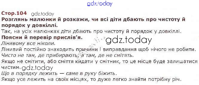 На страницах сайта gdz.today вы найдете учебный и вспомогательный материал, направленный на улучшения знаний школьной программы. ГДЗ - онлайн мир знаний Рішення до частини 1 104 Учебнику по я исследую мир для 1 класса Грущинская Орiон 2018