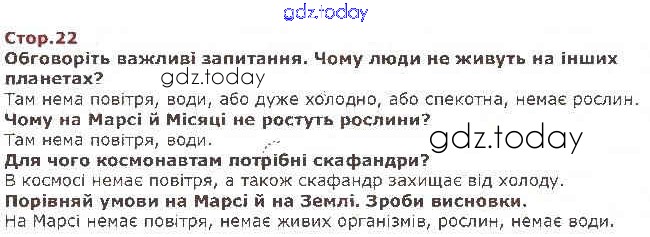 На страницах сайта gdz.today вы найдете учебный и вспомогательный материал, направленный на улучшения знаний школьной программы. ГДЗ - онлайн мир знаний Рішення до частини 1 22 Учебнику по я исследую мир для 1 класса Грущинская Орiон 2018