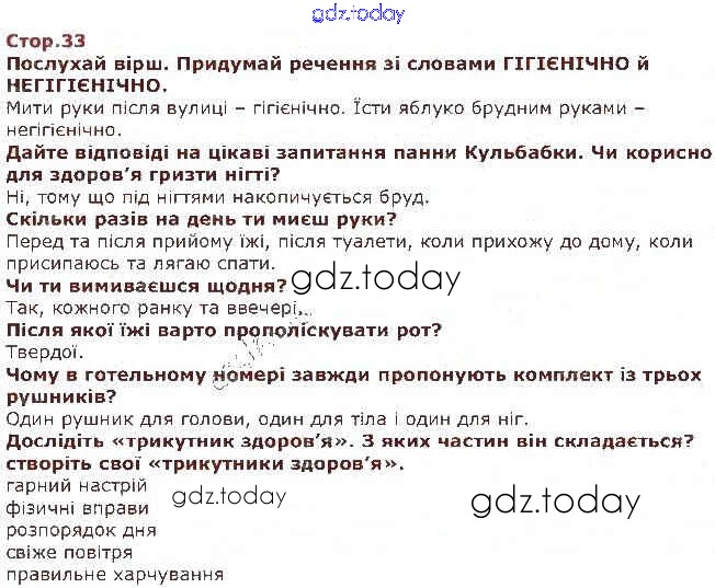 На страницах сайта gdz.today вы найдете учебный и вспомогательный материал, направленный на улучшения знаний школьной программы. ГДЗ - онлайн мир знаний Рішення до частини 1 33 Учебнику по я исследую мир для 1 класса Грущинская Орiон 2018