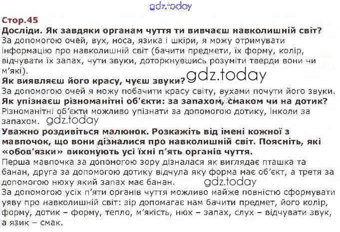 На страницах сайта gdz.today вы найдете учебный и вспомогательный материал, направленный на улучшения знаний школьной программы. ГДЗ - онлайн мир знаний Рішення до частини 1 45 Учебнику по я исследую мир для 1 класса Грущинская Орiон 2018