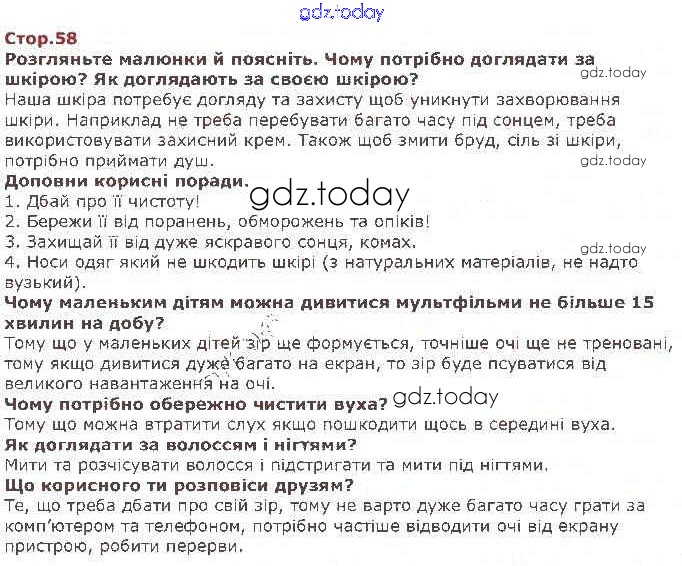 На страницах сайта gdz.today вы найдете учебный и вспомогательный материал, направленный на улучшения знаний школьной программы. ГДЗ - онлайн мир знаний Рішення до частини 1 58 Учебнику по я исследую мир для 1 класса Грущинская Орiон 2018