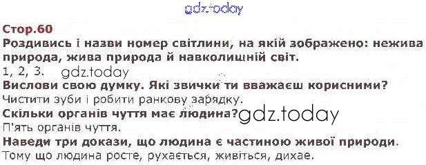 На страницах сайта gdz.today вы найдете учебный и вспомогательный материал, направленный на улучшения знаний школьной программы. ГДЗ - онлайн мир знаний Рішення до частини 1 60 Учебнику по я исследую мир для 1 класса Грущинская Орiон 2018