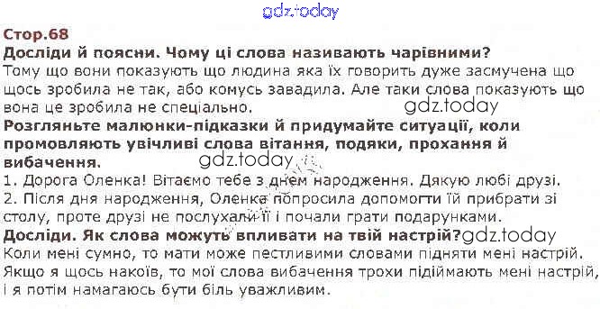 На страницах сайта gdz.today вы найдете учебный и вспомогательный материал, направленный на улучшения знаний школьной программы. ГДЗ - онлайн мир знаний Рішення до частини 1 68 Учебнику по я исследую мир для 1 класса Грущинская Орiон 2018