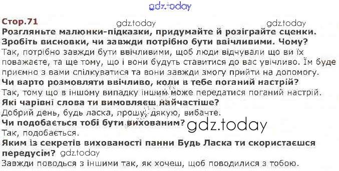 На страницах сайта gdz.today вы найдете учебный и вспомогательный материал, направленный на улучшения знаний школьной программы. ГДЗ - онлайн мир знаний Рішення до частини 1 71 Учебнику по я исследую мир для 1 класса Грущинская Орiон 2018
