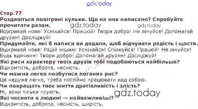 На страницах сайта gdz.today вы найдете учебный и вспомогательный материал, направленный на улучшения знаний школьной программы. ГДЗ - онлайн мир знаний Рішення до частини 1 77 Учебнику по я исследую мир для 1 класса Грущинская Орiон 2018