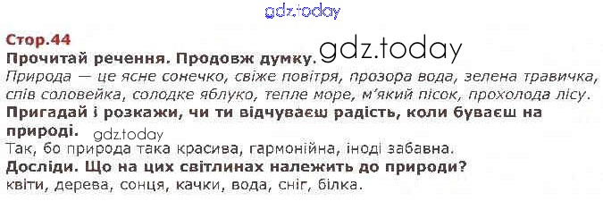 На страницах сайта gdz.today вы найдете учебный и вспомогательный материал, направленный на улучшения знаний школьной программы. ГДЗ - онлайн мир знаний Рішення до частини 2 44 Учебнику по я исследую мир для 1 класса Грущинская Орiон 2018