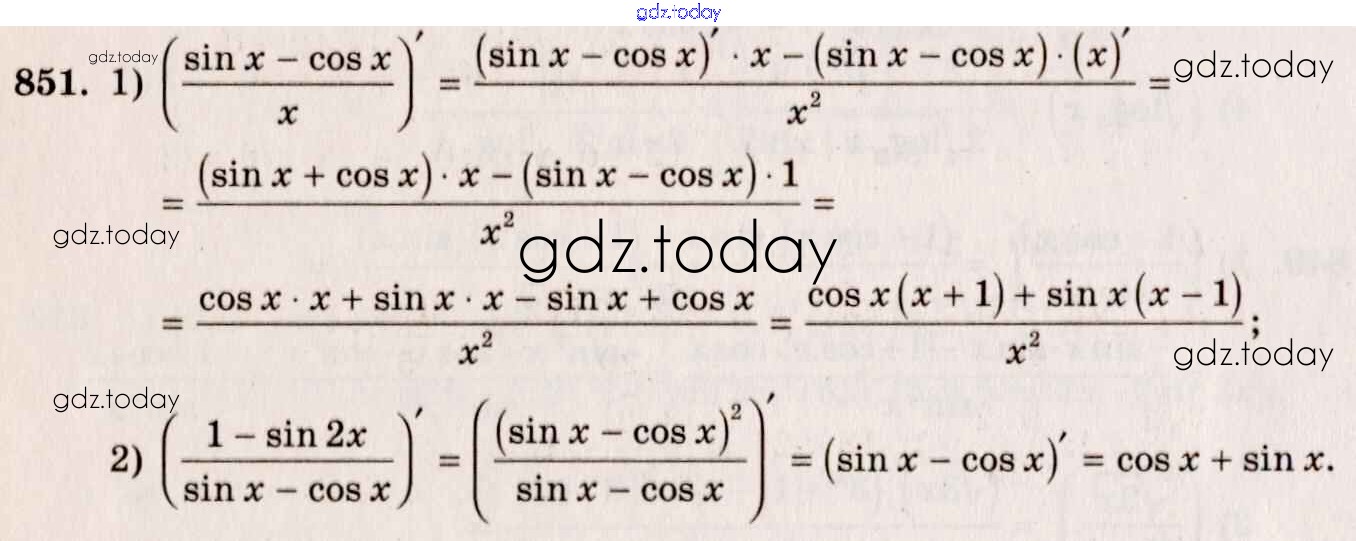 Ответы к Решение к упражнениям 851 Учебнику по Алгебре для 10-11 класса Алимов, Ткачева Базовый и углубленный уровень Просвещение 2015