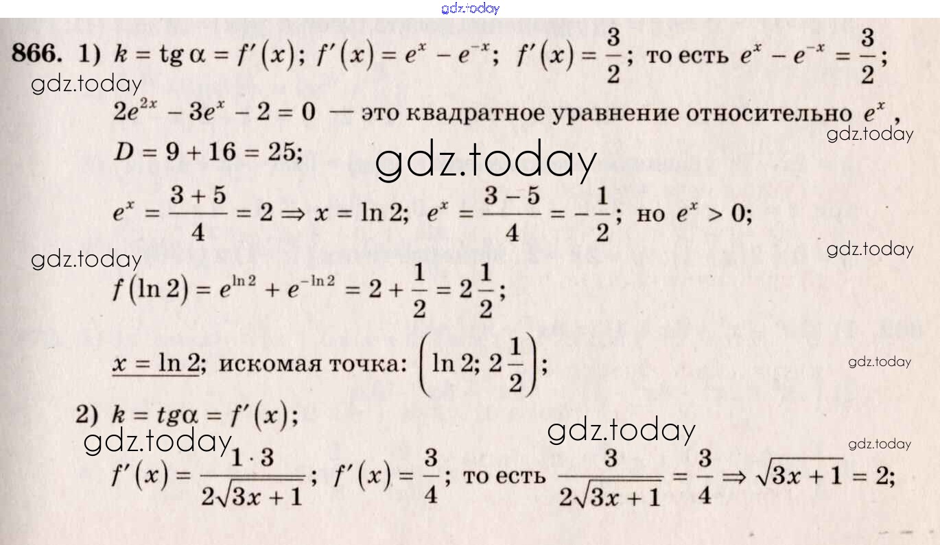 На страницах сайта gdz.today вы найдете учебный и вспомогательный материал, направленный на улучшения знаний школьной программы. ГДЗ - онлайн мир знаний Решение к упражнениям 866 Учебнику по Алгебре для 10-11 класса Алимов, Ткачева Базовый и углубленный уровень Просвещение 2015
