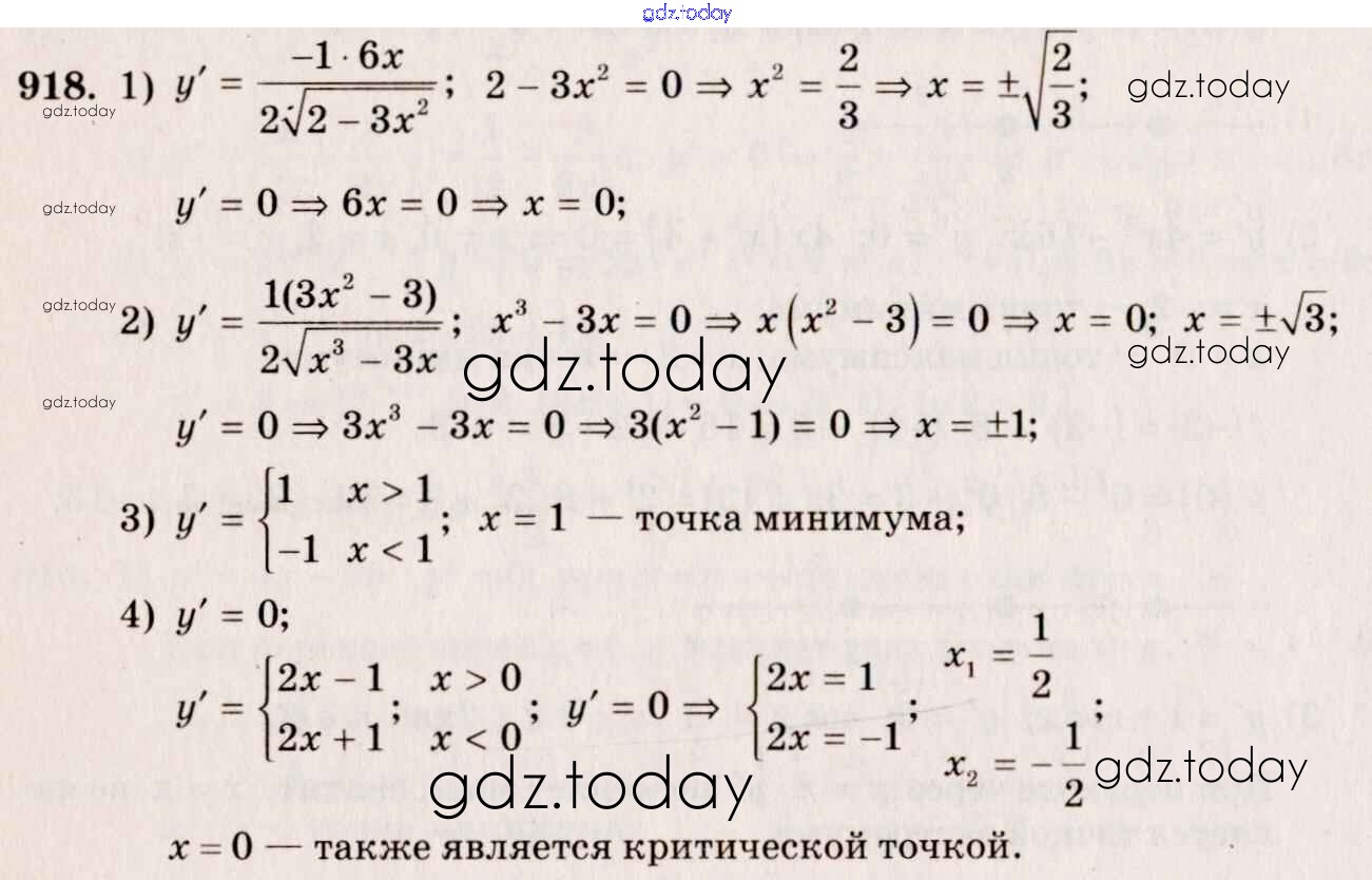 Ответы к Решение к упражнениям 918 Учебнику по Алгебре для 10-11 класса Алимов, Ткачева Базовый и углубленный уровень Просвещение 2015