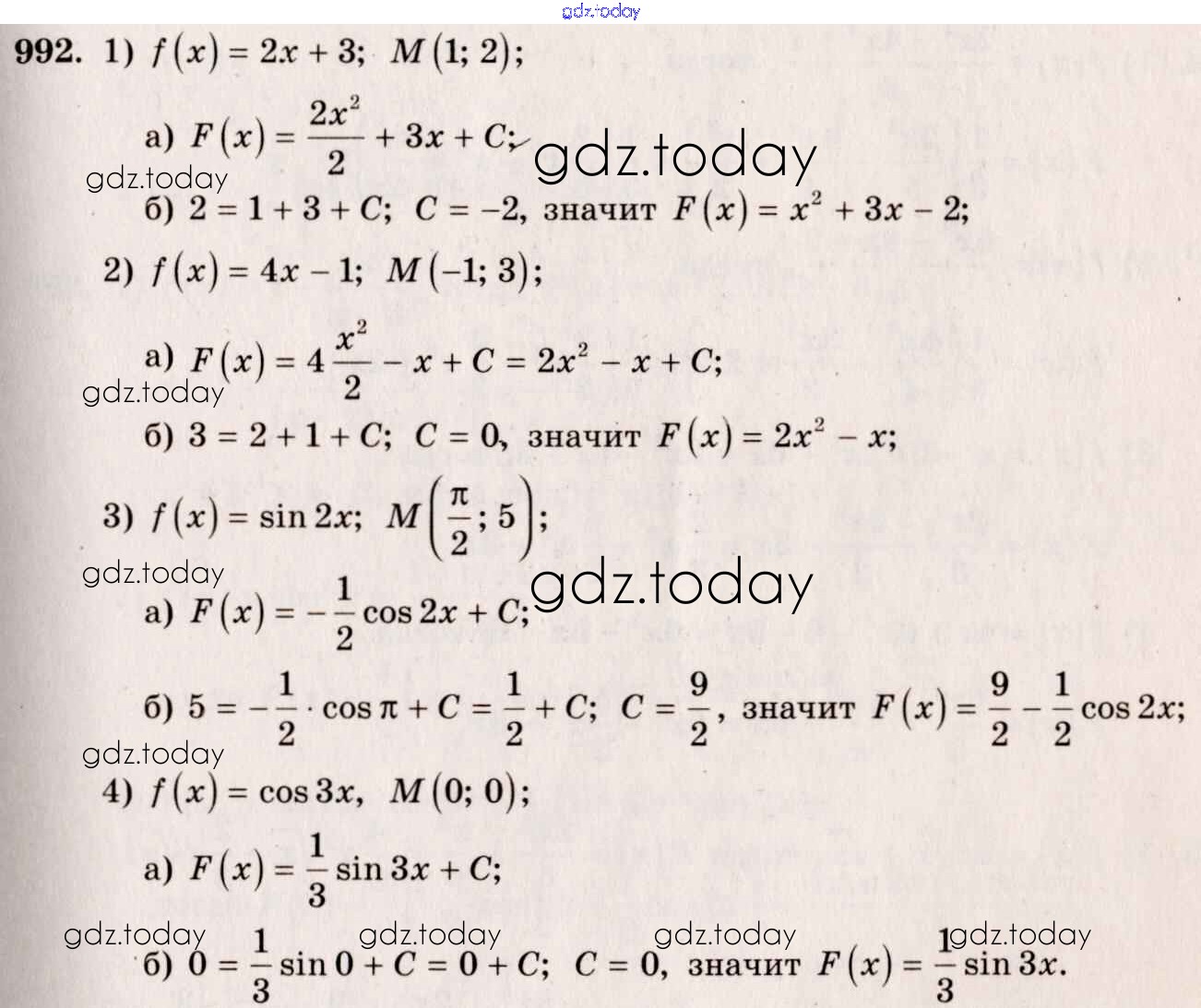 Ответы к Решение к упражнениям 992 Учебнику по Алгебре для 10-11 класса Алимов, Ткачева Базовый и углубленный уровень Просвещение 2015