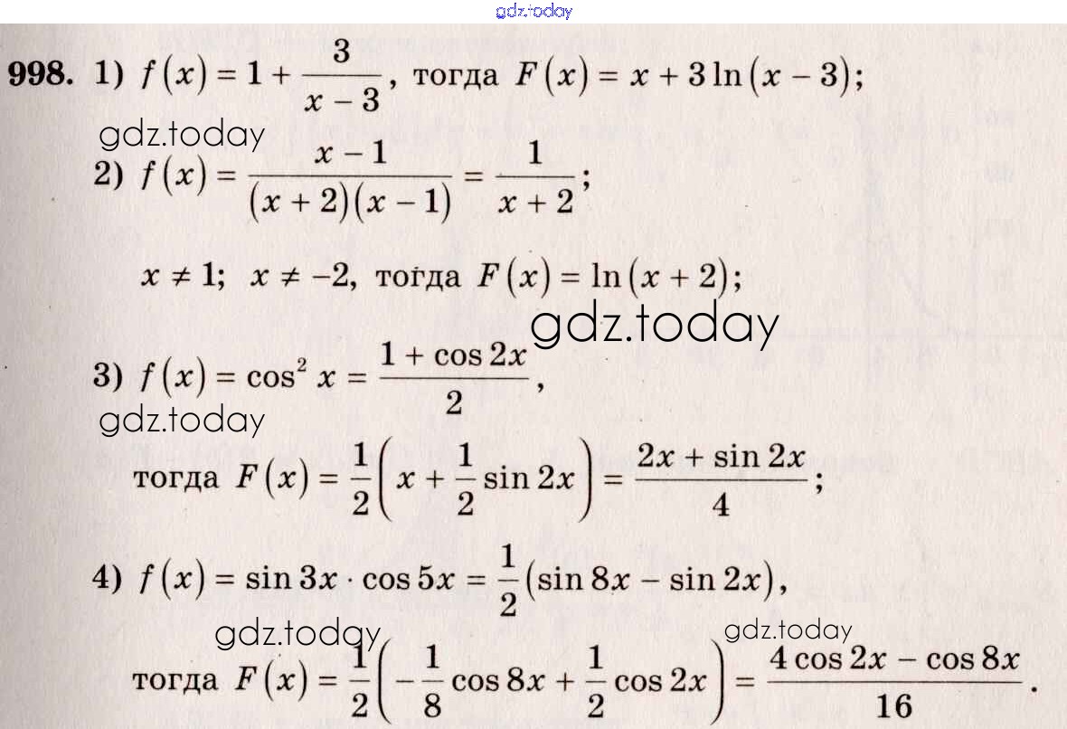 Ответы к Решение к упражнениям 998 Учебнику по Алгебре для 10-11 класса Алимов, Ткачева Базовый и углубленный уровень Просвещение 2015
