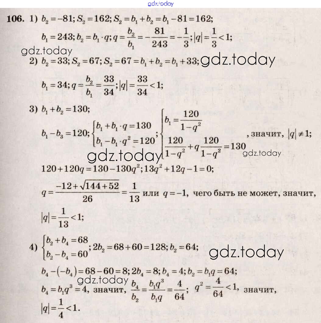 Ответы к Решение к упражнениям 106 Учебнику по Алгебре для 10-11 класса Алимов, Ткачева Базовый и углубленный уровень Просвещение 2015