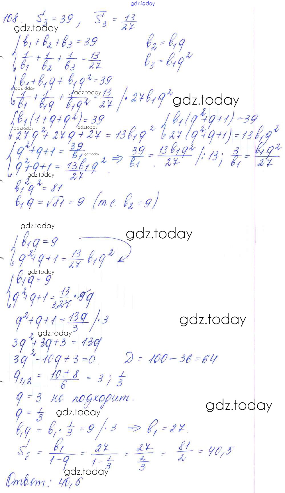 Ответы к Решение к упражнениям 108 Учебнику по Алгебре для 10-11 класса Алимов, Ткачева Базовый и углубленный уровень Просвещение 2015