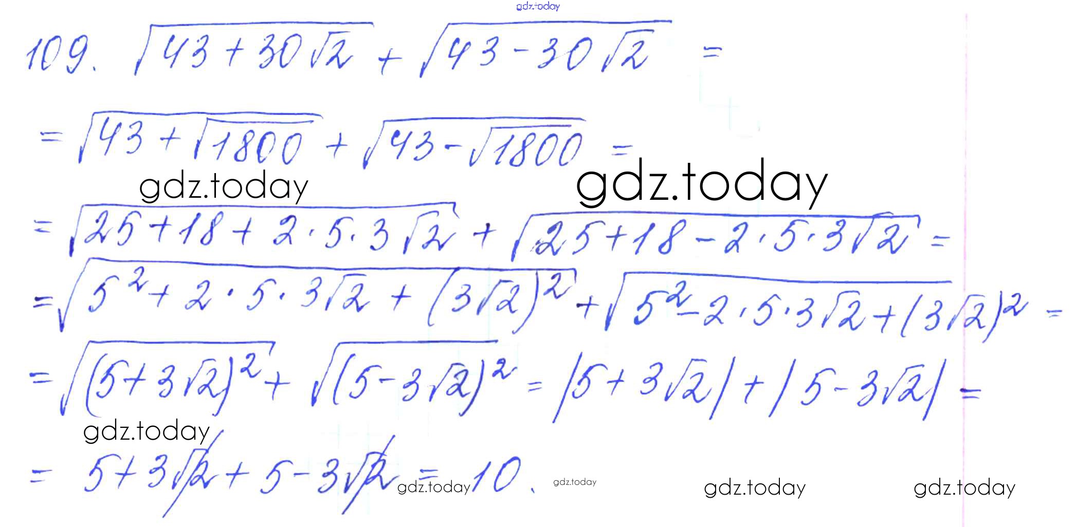 Ответы к Решение к упражнениям 109 Учебнику по Алгебре для 10-11 класса Алимов, Ткачева Базовый и углубленный уровень Просвещение 2015