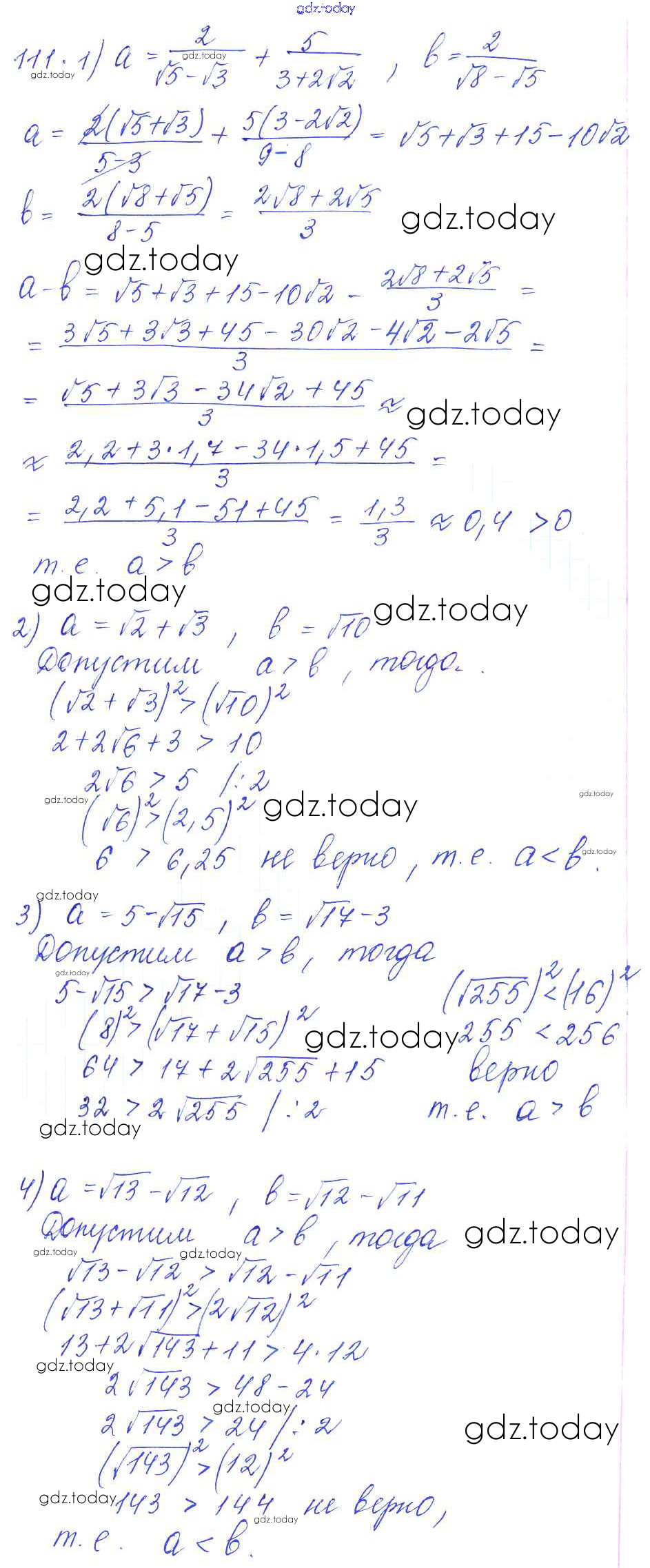 Ответы к Решение к упражнениям 111 Учебнику по Алгебре для 10-11 класса Алимов, Ткачева Базовый и углубленный уровень Просвещение 2015