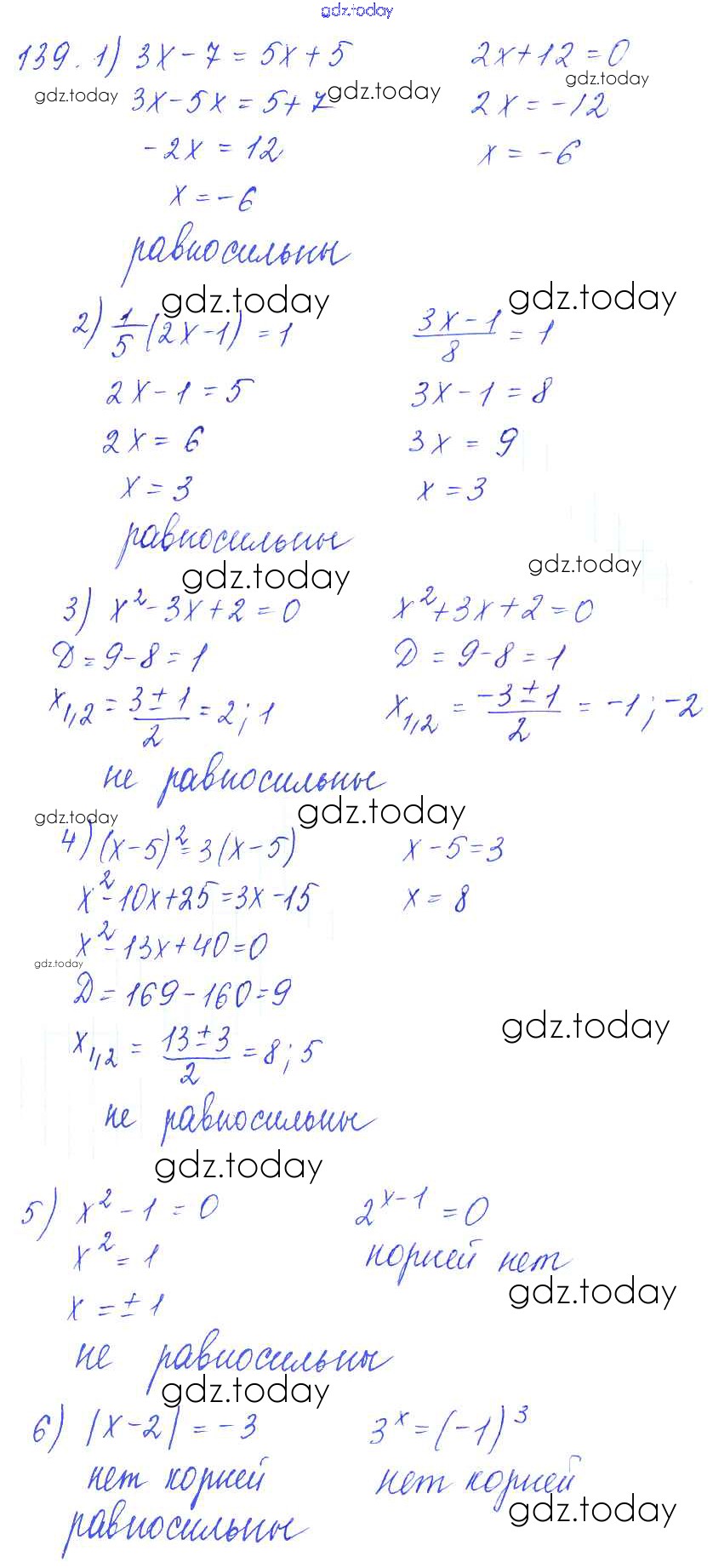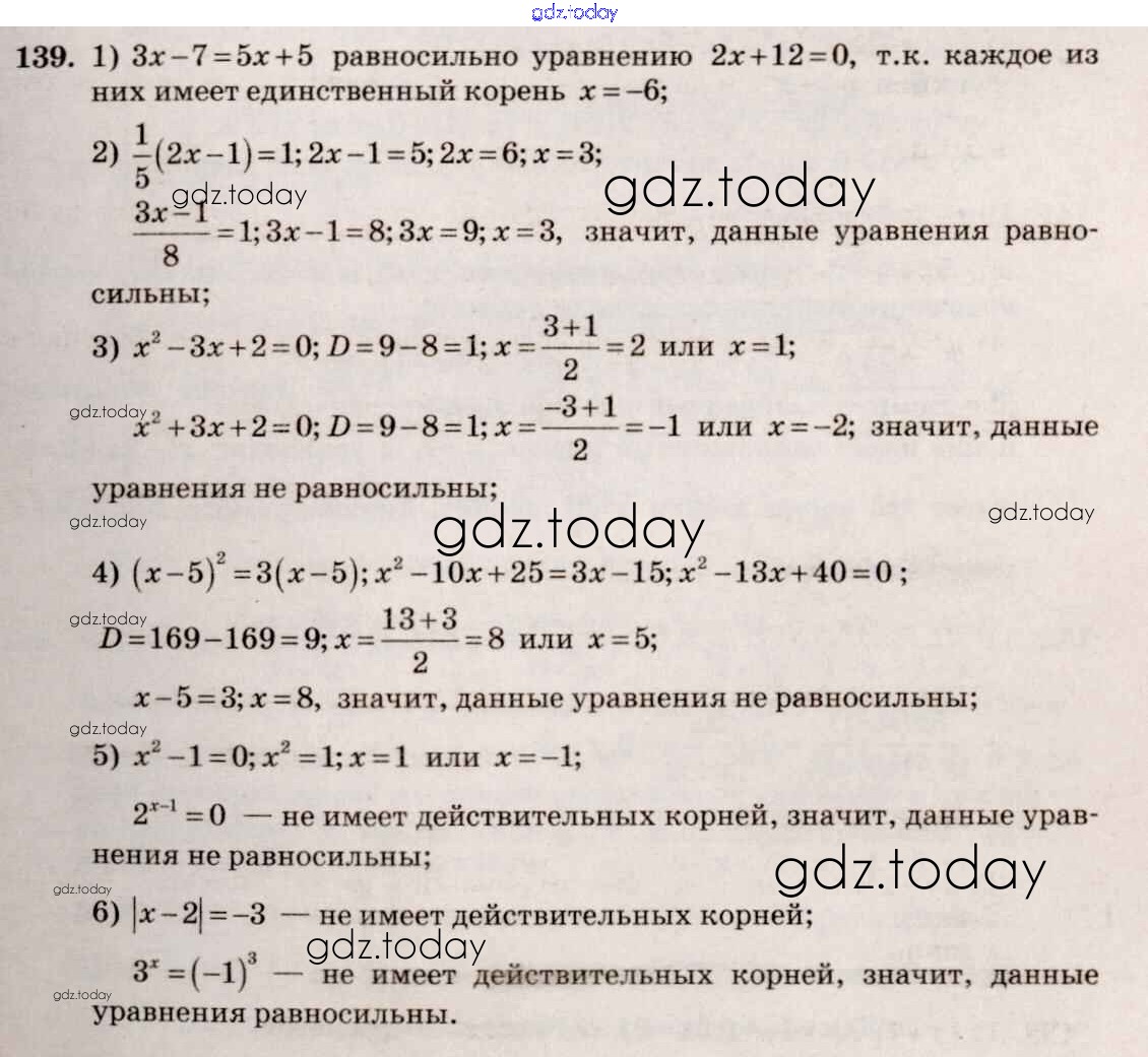 Ответы к Решение к упражнениям 139 Учебнику по Алгебре для 10-11 класса Алимов, Ткачева Базовый и углубленный уровень Просвещение 2015