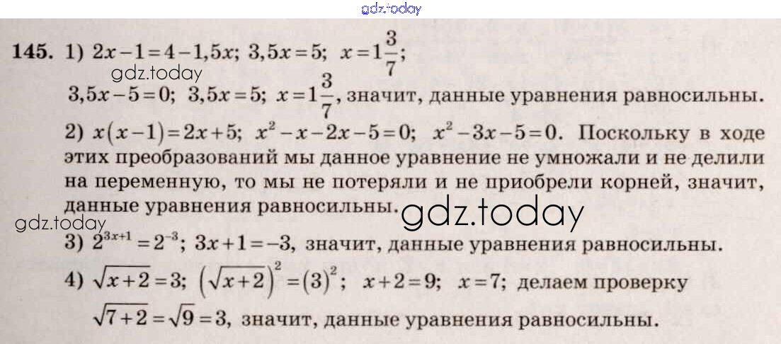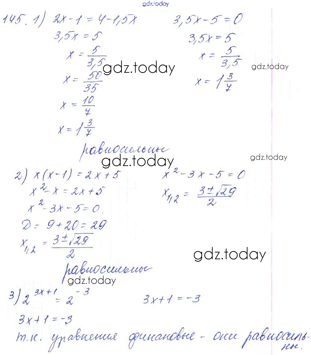 Ответы к Решение к упражнениям 145 Учебнику по Алгебре для 10-11 класса Алимов, Ткачева Базовый и углубленный уровень Просвещение 2015