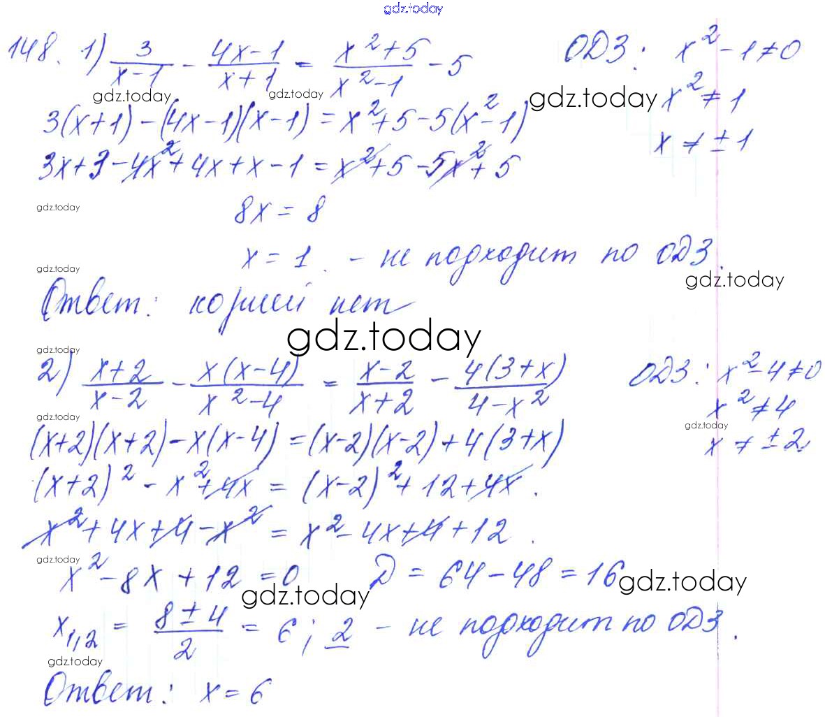 Ответы к Решение к упражнениям 148 Учебнику по Алгебре для 10-11 класса Алимов, Ткачева Базовый и углубленный уровень Просвещение 2015