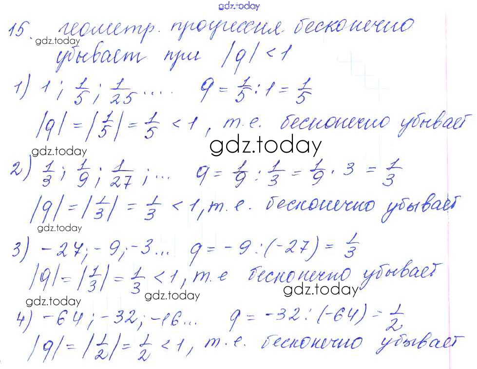 Ответы к Решение к упражнениям 15 Учебнику по Алгебре для 10-11 класса Алимов, Ткачева Базовый и углубленный уровень Просвещение 2015