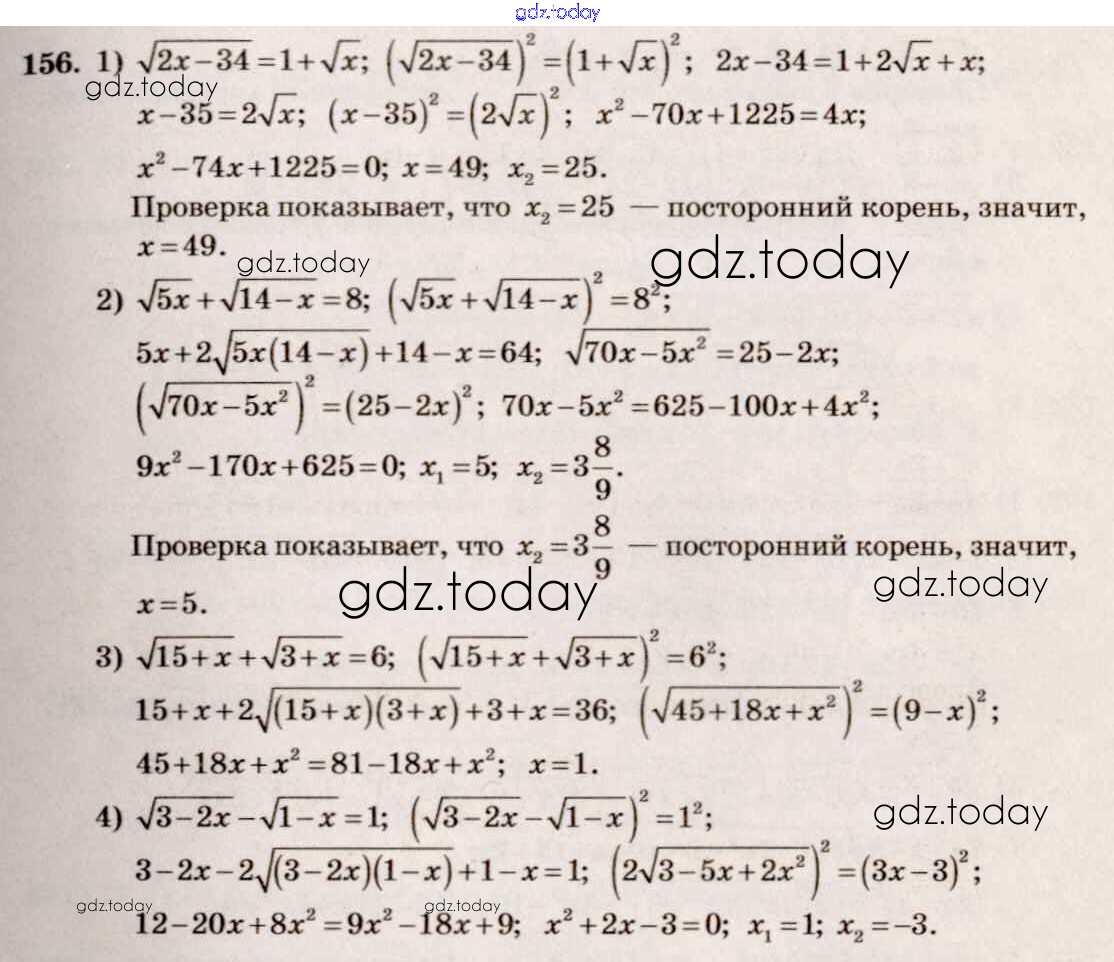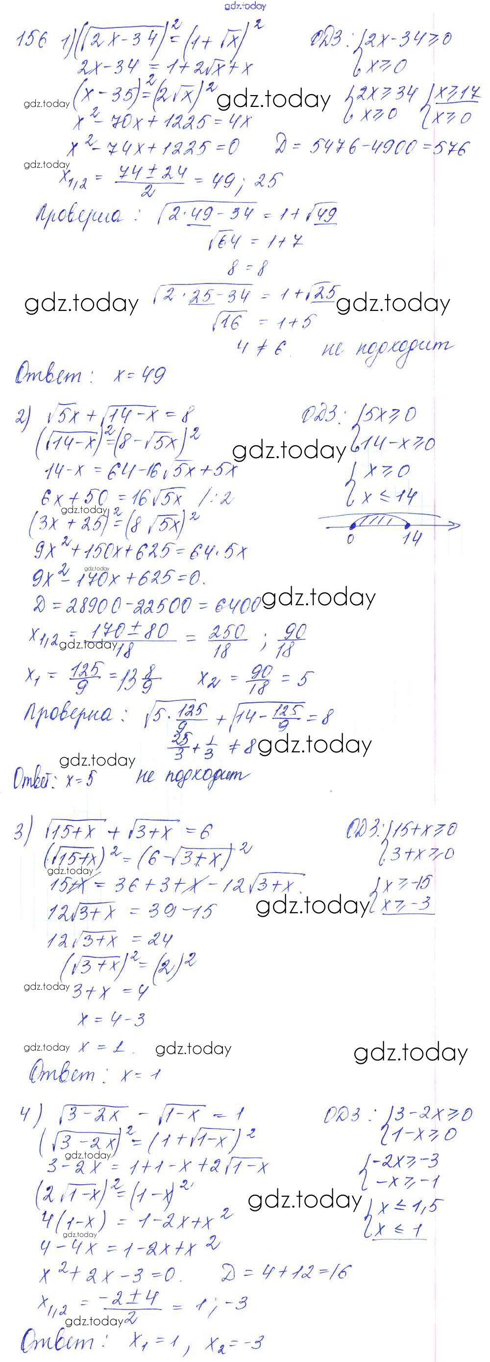 Ответы к Решение к упражнениям 156 Учебнику по Алгебре для 10-11 класса Алимов, Ткачева Базовый и углубленный уровень Просвещение 2015